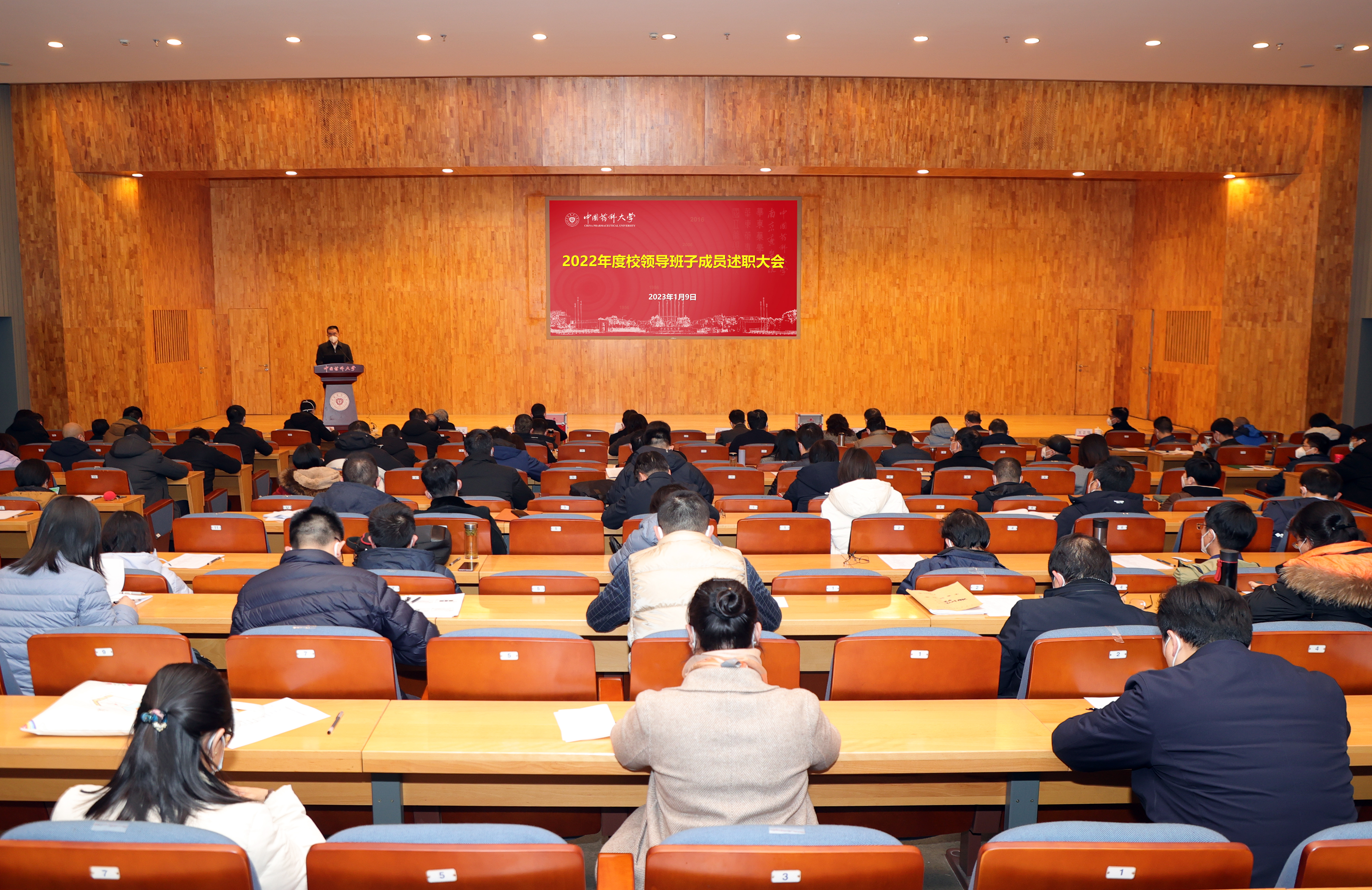 1月9日下午,我校以线上线下相结合的方式举行2022年度校领导班子成员述职大会,线下会场设在江宁校区会议中心二楼报告厅,校领导班子成员、全体中层干部等130余人参加会议。