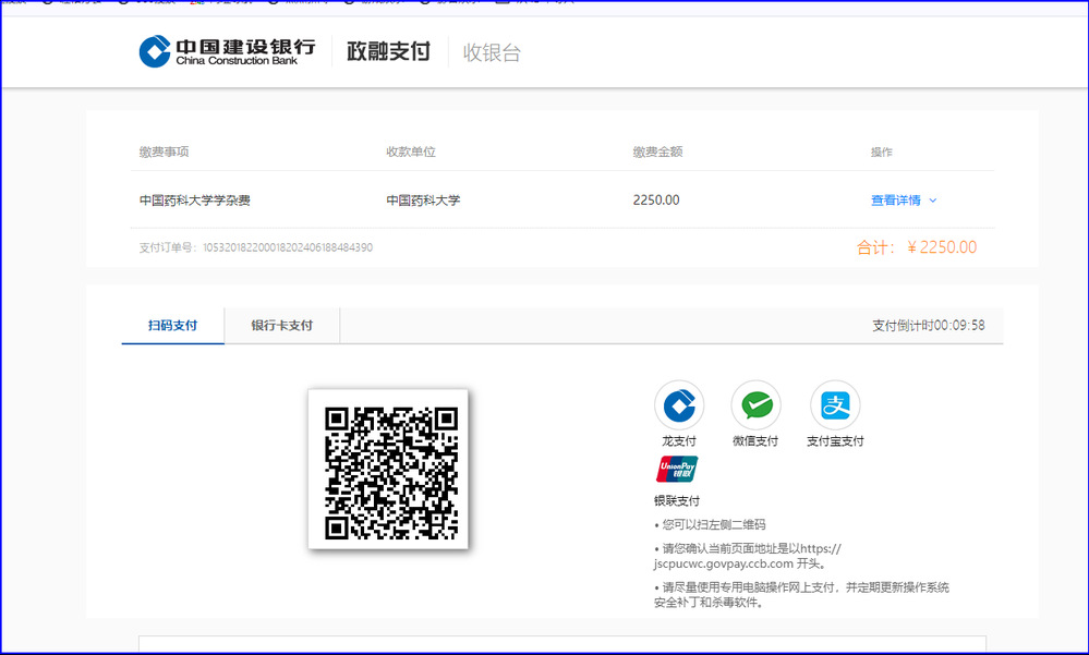 请选择合适的支付方式支付学费。