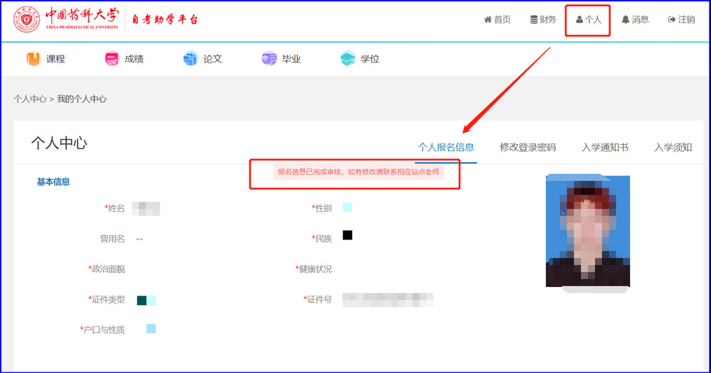 特别提醒:个人照片必须上传,上传时注意图像规格及要求。请按标准要求提供。