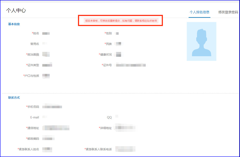 当报名未审核时,考生可修改信息后重新提交。