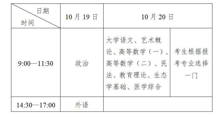 专升本 | 药学 | 经管类 | 英语、政治、高等数学(二) |