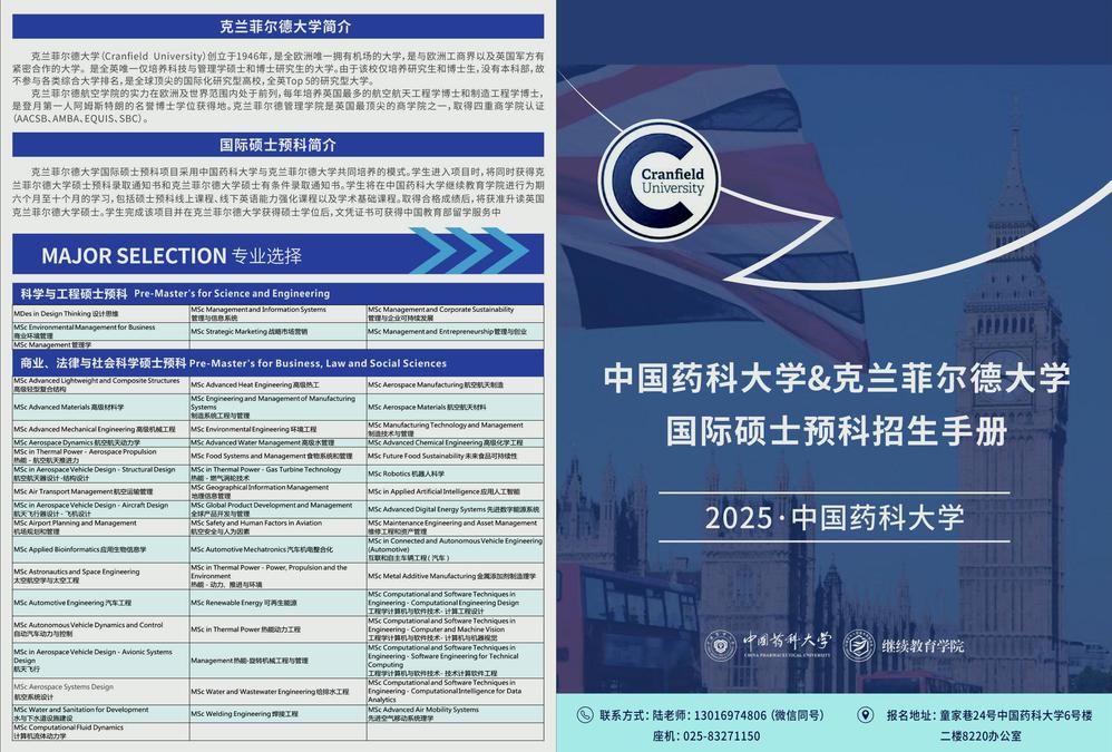 3.节省费用——项目学费仅为赴英国克兰菲尔德大学读硕士预科学费的 5-7 折,并节省英国当地的生活费。