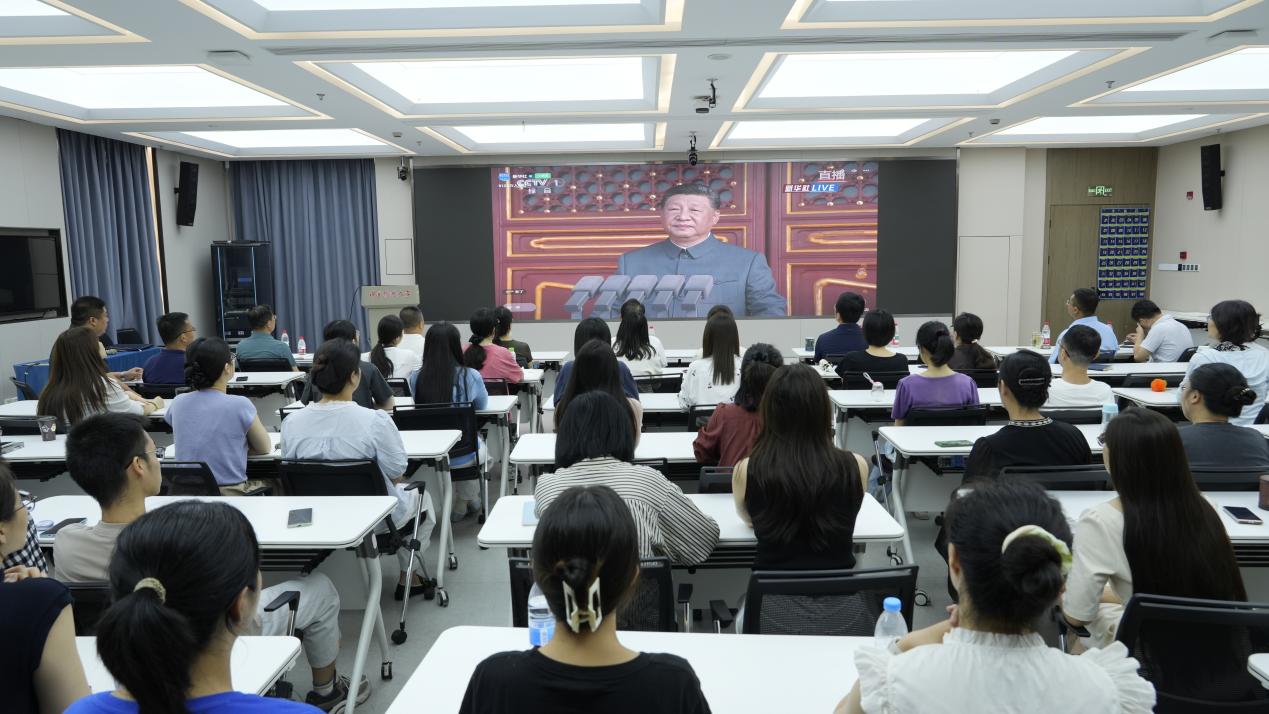 感恩和平时代、致敬强国荣光、激发奋进力量。9月3日9时,纪念中国人民抗日战争暨世界反法西斯战争胜利80周年阅兵活动在北京举行,为共同见证这一激动人心的历史时刻,激发爱国情怀与奋斗精神,继续教育学院联合期刊编辑部组织全体党员在玄武门校区6号楼集体观看线上直播。校长助理、玄武门校区党委书记、管委会主任邬瑞斌,玄武门校区党委副书记、管委会副主任付军等出席活动。
