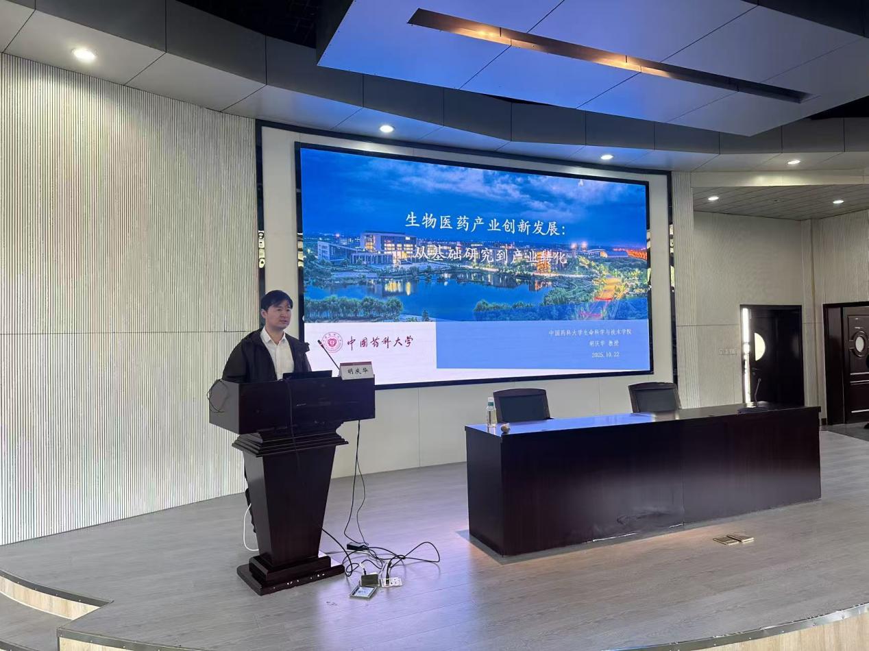 开班仪式结束后,我校生命科学与技术学院院长胡庆华以《生物医药产业创新发展:从基础研究到产业转化》为题为学员上了精彩的第一课。