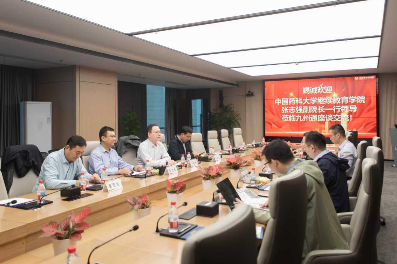近日,继续教育学院副院长张志强一行赴九州通医药集团股份有限公司调研交流,该公司人力资源总部部长张超、九州通大学校长何中伟、副校长陈亮予以热情接待。
