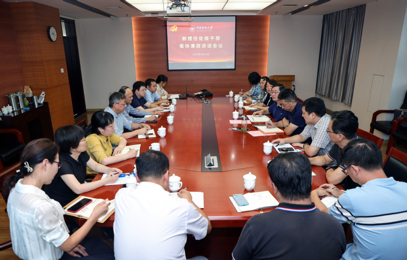 9月22日下午,我校纪委在江宁校区行政楼501会议室召开集体廉政谈话会议,校党委副书记、纪委书记戴建君出席会议并讲话,15位新提任处级干部参加会议。会议由校纪委副书记、监察处处长施建平主持。