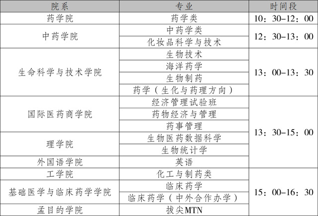 表中未列出的专业:15:00-16:30。