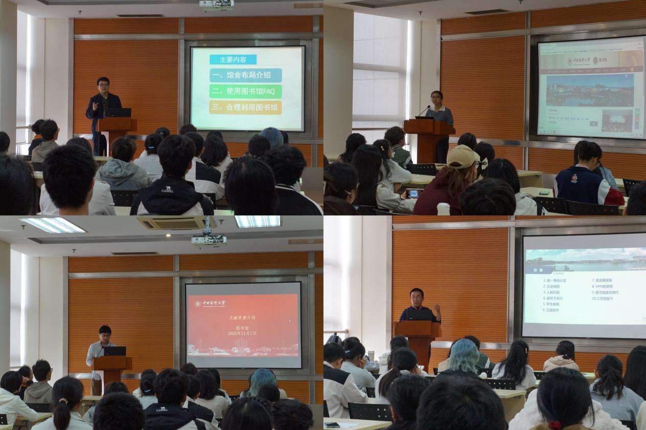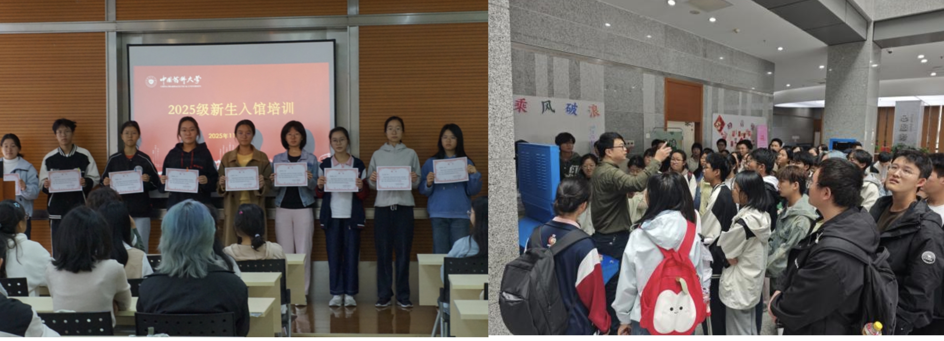 随后,举行学生馆员聘书颁发仪式。聘任仪式后,图书馆各部门老师给同学们讲解了图书借还流程与读者权益、馆藏纸质与电子资源介绍、文献检索实用技巧讲授、VPN远程访问及校园卡虚拟支付等与学生密切相关的业务和服务内容培训,帮助新生尽快了解和熟悉图书馆、信息化处的服务内容。培训结束后,同学们在工作人员引导下实地参观图书馆,系统了解馆舍功能分区与布局,进一步熟悉了图书馆的情况和服务内容。