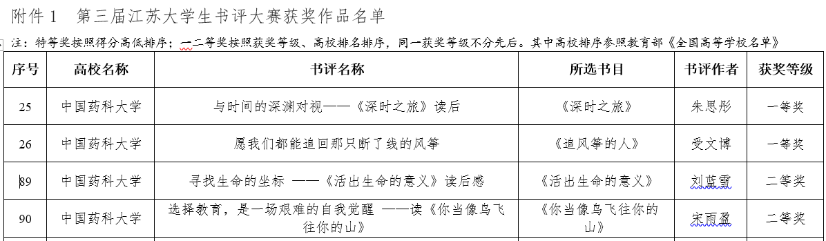 近日,由江苏省教育厅主办、江苏省高等教育学会协办的第三届江苏大学生读书文化节系列活动评选结果揭晓,我校学子喜获佳绩,在系列赛事中共荣获7项省级奖项。其中,江苏大学生书评大赛获一等奖2项、二等奖2项;江苏百万学子“云诵读”活动中获优秀作品3项,2项入选为“推荐展示作品”。