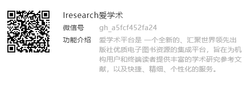 电子专著通过爱学术平台提供访问。Iresearch(爱学术)是中国教育图书进出口有限公司打造的外文原版电子书库,作为本地化的集成平台,旨在汇聚世界领先出版社的优质电子图书资源,为广大读者提供丰富的学术研究参考文献。