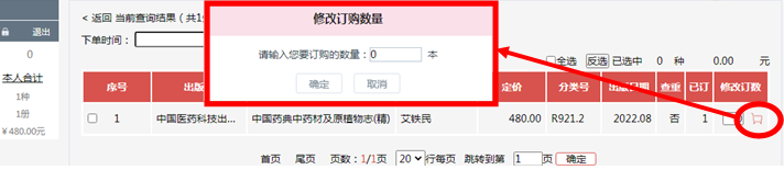 1、选取对应书后,序号前备选框□打上“√”,然后点击页面右端“订购”按钮完成订购。