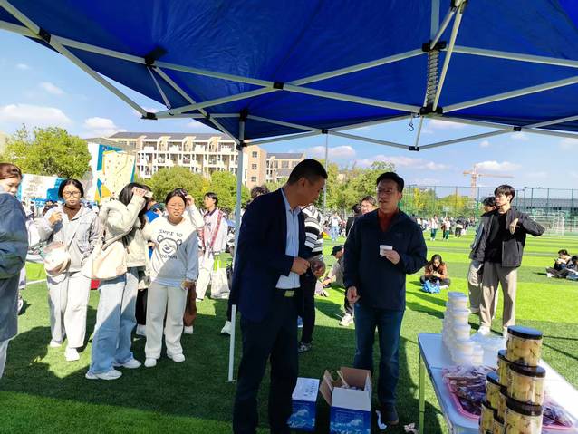 10月24日上午,点心供应点人气高涨。供应点戚风蛋糕、曲奇饼干等甜品排列有序,协会成员微笑迎客。成员们为刚结束比赛的教职工主动递上点心,“运动员辛苦了,尝尝曲奇补能量!”教职工们品尝后赞不绝口,为协会点赞。