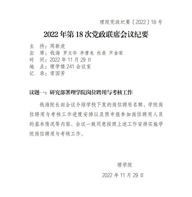 2022年第18次党政联席会议纪要