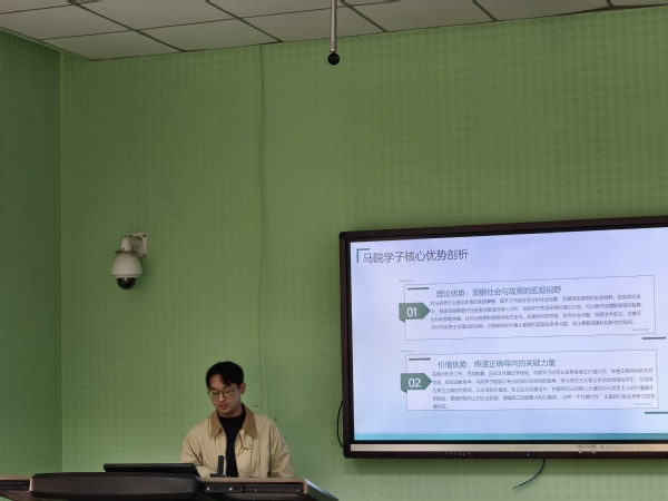 作为2022届马克思主义学院毕业生,尹周力结合马克思主义理论专业毕业生求职形势,深入分析职业选择面临的机遇和挑战,建议同学们要主动积累竞争力,通过实习、教学实践、论文写作与考编准备等方式提升自身实力。他强调青年学子应将个人发展与国家需求同频共振,做马克思主义理论的践行者。