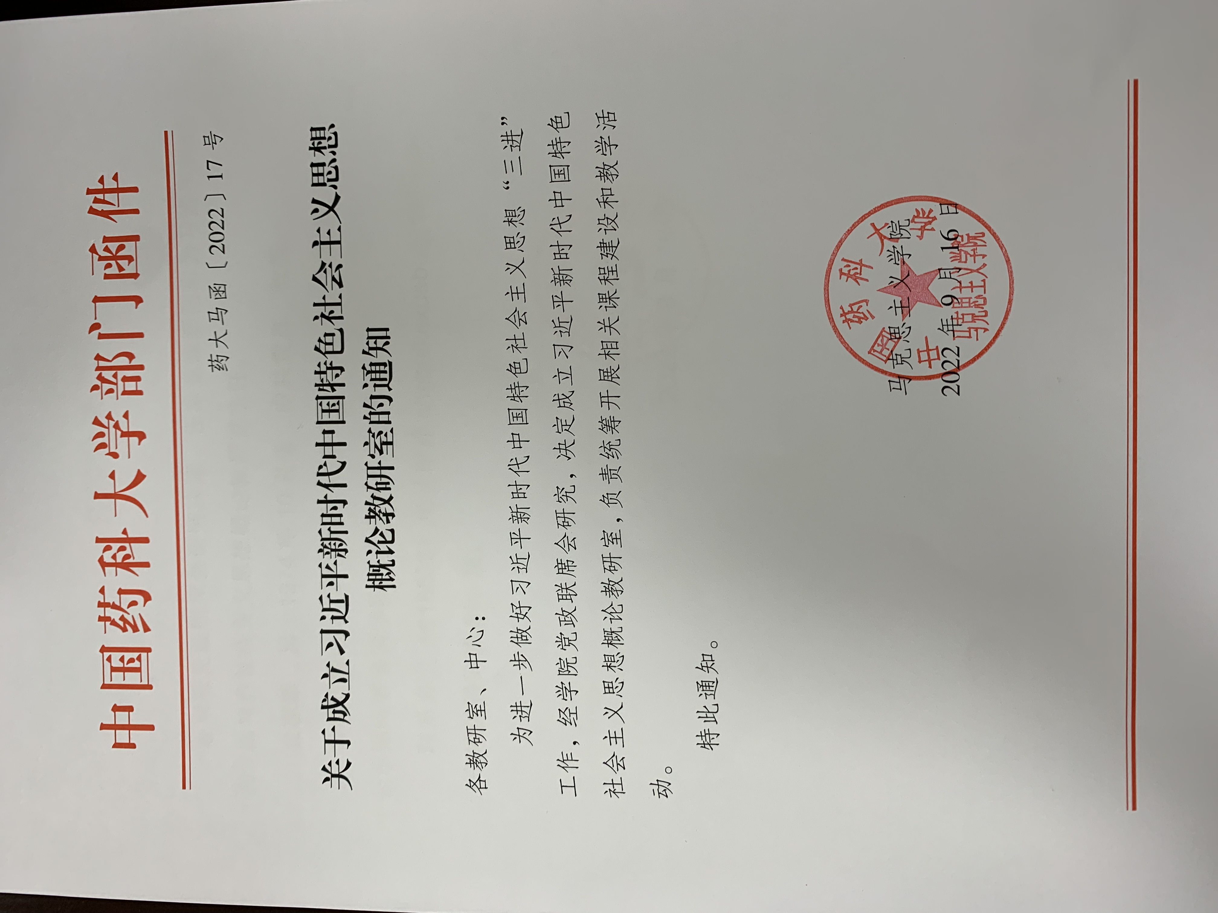 关于成立习近平新时代中国特色社会主义思想概论教研室的通知