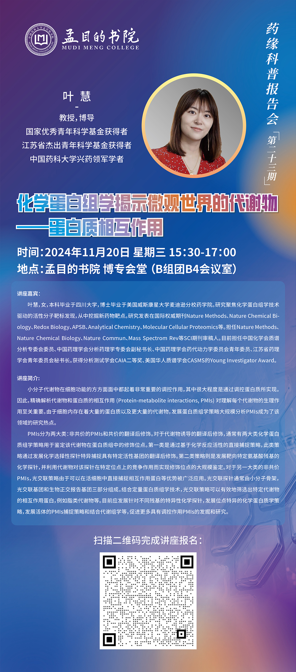 讲座预告|化学蛋白组学揭示微观世界的代谢物——蛋白质相互作用
