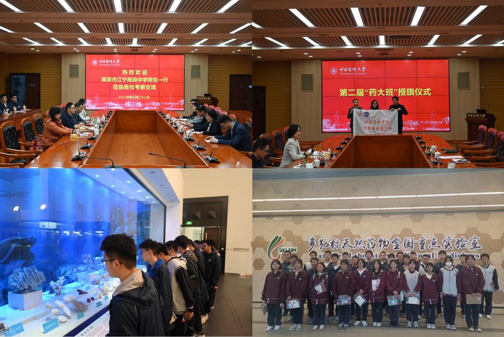 期间,双方举行了第二届“药大班”班旗授予仪式。江宁高级中学师生一行参观了我校药学博物馆、新实验大楼、樱花大道等地。
