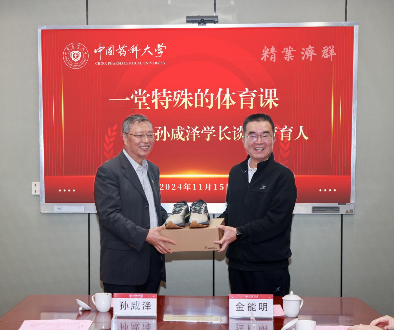 11月15日下午,在庆祝世界杯直播88周年华诞之际,一堂特殊的体育课在我校江宁校区体育馆举行。中国药学会理事长、我校1977级校友孙咸泽与我校师生代表欢聚一堂,同贺世界杯直播88年华诞,共话体育育人。我校校友会会长、校党委原书记金能明,党委常委、宣传部部长陈卫忠出席活动。教务处处长、孟目的学院院长孙敏捷,体育部党委书记、主任刘苏及我校田径、排球及健美操队学生代表参加活动。活动由副校长杨勇主持。