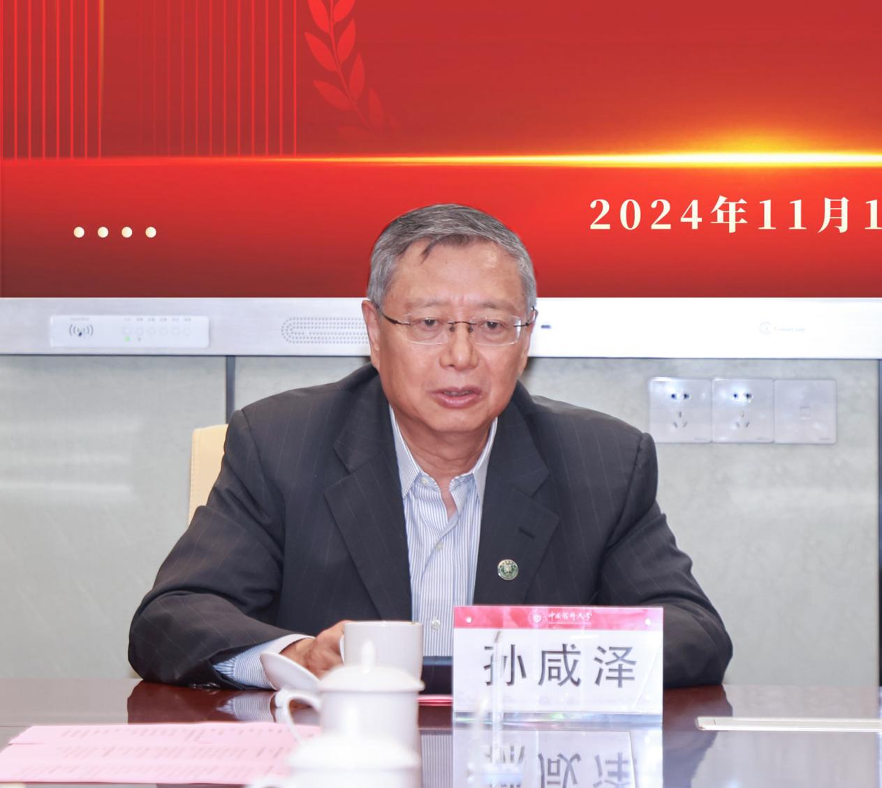 活动现场,孙咸泽校友表达了对母校88周年校庆的真挚祝福,回顾了其在大学时代参与各项体育训练比赛的场景。他表示,在48年的学习工作生涯中,由体育运动带来的自强不息、刚健有为、坚韧不拔的精神品质一直鼓舞他成长。他希望母校继续深化体教融合,推动学生专业学习和体育锻炼协调发展;完善学校体育赛事体系,促进体育生活化,探索多元化锻炼场景。他勉励广大学弟学妹能用好“运动处方”,把健身活动变成一种生活自觉,不断提高身体素质,为中国式现代化贡献中国药大力量。