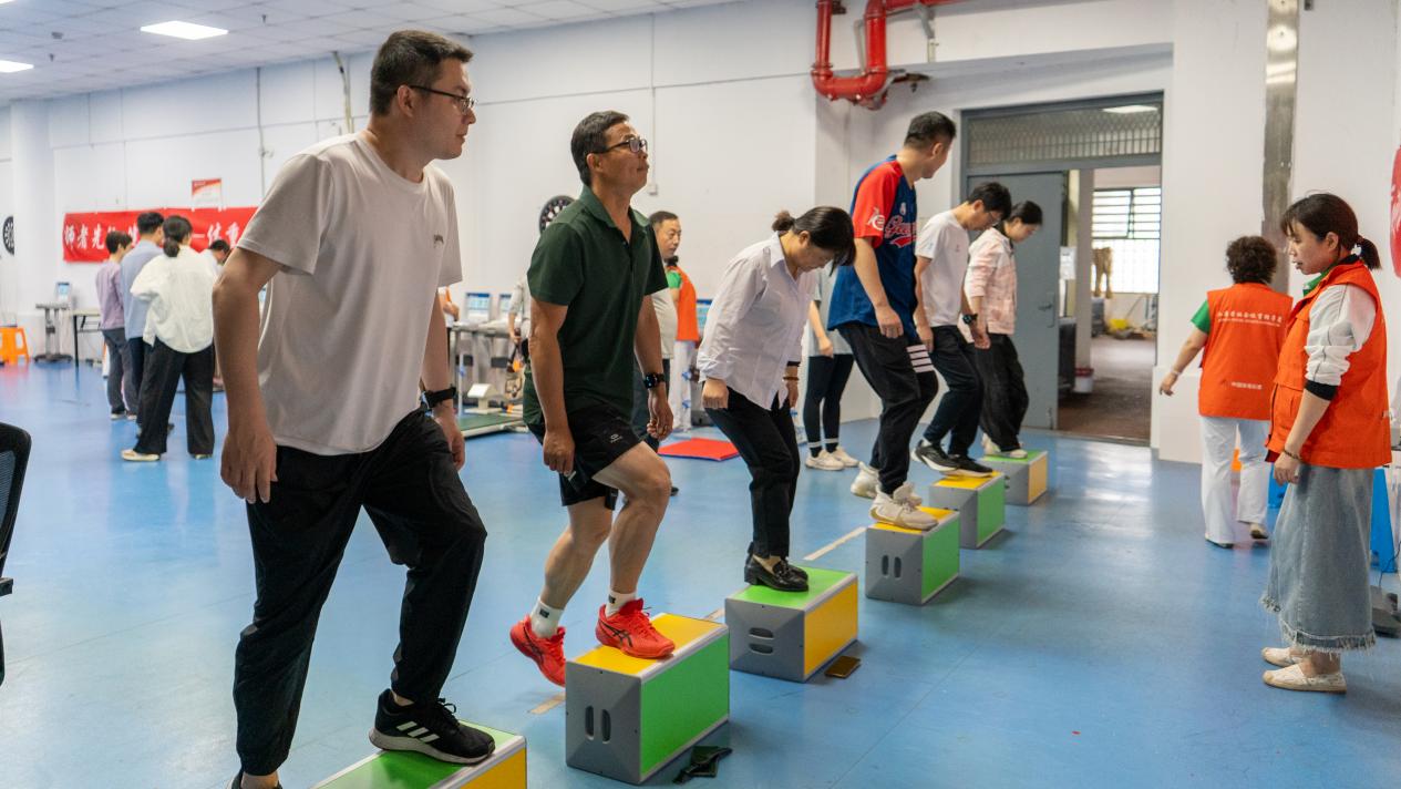 测试现场井然有序,教职工们精神饱满、相互关心鼓励,传递出健康向上的精神风貌与和谐友爱的良好氛围。据了解,本次活动主办方结合教职工性别和年龄特点进行区分安排。测试包括 HRA 健康风险评估、身体素质测试和骨密度三项。其中,身体素质测试分为身体的形态、机能和素质三大类十项指标,从基本情况、力量、耐力、爆发力、柔韧性等多个方面综合衡量体质状况,帮助教职工了解自身健康情况,增强健康生活意识。