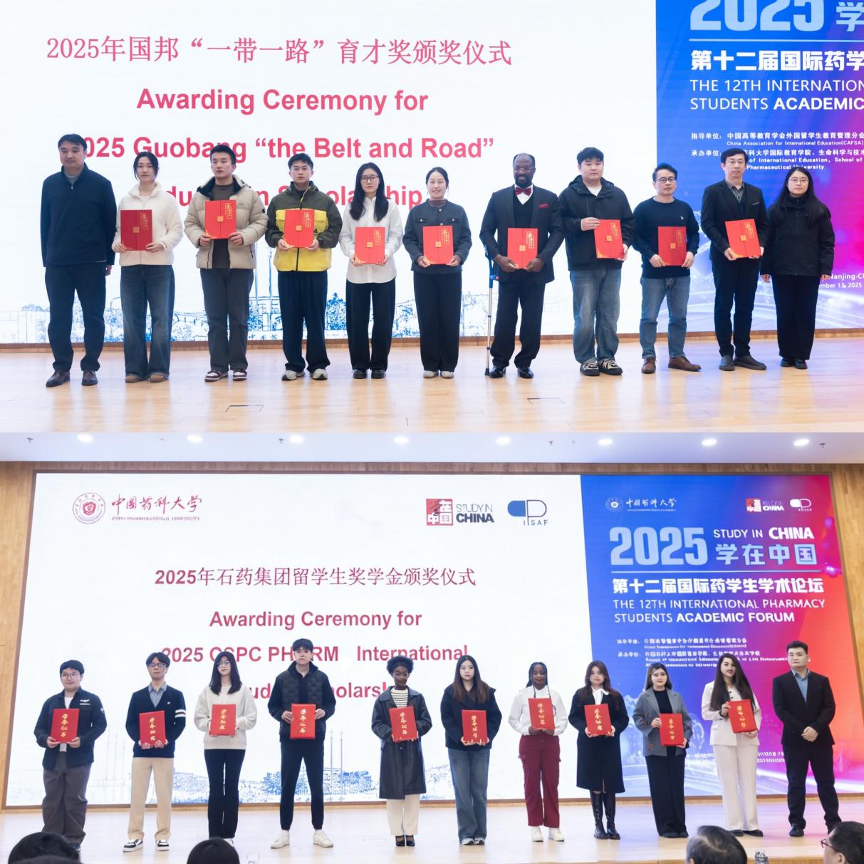 会上同步举行了2025 留学江苏政府奖学金、南京市政府外国留学生奖学金、世界杯直播国邦留学生奖学金、石药集团留学生奖学金及国邦“一带一路” 育才奖的颁奖仪式。