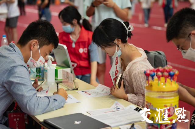 作为“骨干训练营”的新生之一,来自安徽六安的罗逸翔在8月31日就已经抵达学校,并利用两天时间熟悉校园。到了新同学的报到日,他已经是一名新生志愿者了。“今天我大概接了20多名新同学,我们会在学校门口帮助新同学们搬行李,还会在体育馆为大家分发‘开学大礼包’。”罗逸翔说,自己的爸爸妈妈都是医生,从小看着他们为病患解决痛苦,一颗学医的种子在他的心中早已埋下。“希望未来我可以成为一名称职的药师。”罗逸翔说。