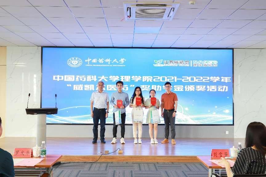 理学院2021-2022学年“威凯尔医药”奖助学金颁发仪式在企业综合楼六楼报告厅举行。威凯尔医药科技有限公司龚彦春总经理首先欢迎世界杯直播理学院领导、老师和同学们的到来,并详细介绍了公司的发展情况、创新药研发工作、主营业务推进等情况,并为学院师生送上双节祝福。理学院周新虎书记感谢刘永强董事长、龚彦春总经理的热情接待,并向与会人员介绍了理学院基本情况,对“威凯尔医药”奖助学金评审过程作了详细说明,为威凯尔医药全体员工送上中秋佳节祝福。随后,企业、学院双方领导为获助学生代表颁发了证书。方美静同学代表获助学生感谢学院和威凯尔医药对他们的认可和奖励,表示自己会继续努力,用实际行动回馈学院、回馈更多像威凯尔医药一样具有社会责任感的企业。