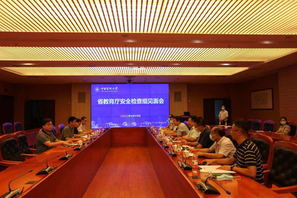 9月15日下午,省教育厅高校常态化安全大检查第一工作组来我校检查校园安全工作。副校长袁浩出席会议,保卫处、实验室与设备管理处、基建后勤处、学生工作处、后勤集团等部门负责人参加会议。