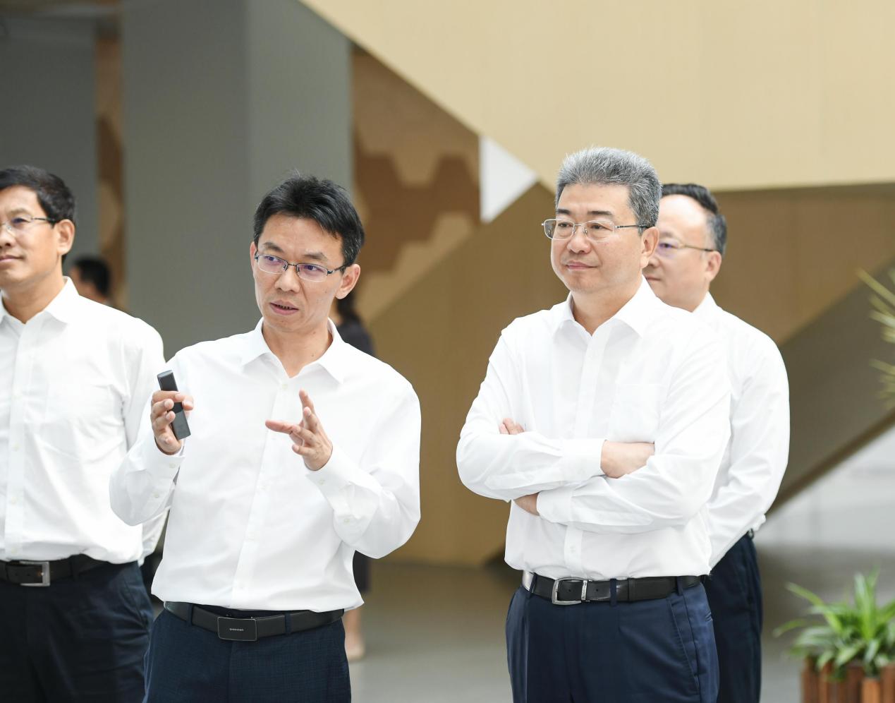 吴岩副部长一行首先赴我校孟目的学院调研。在孟目的书院暨“一站式”学生社区,听取了副校长杨勇关于我校孟目的学院建院背景、办学特色、书院文化、拔尖创新人才培养的情况汇报,并实地参观了书院党团活动室、开放阅览室、导师工作室、3D打印创客工作室及健身房等书院文化育人空间。孟目的学院副院长孙敏捷汇报了学院学生学习科研、社会实践、党群建设等情况。吴岩副部长对我校书院制培养模式表示肯定。他希望,我校能承续中国书院传统,鼓励更多“德艺双馨”的“大先生”入驻书院,在面对面、零距离的接触中让青年学生感受优秀前辈学业水平、人格塑造等方面的教育与熏陶。