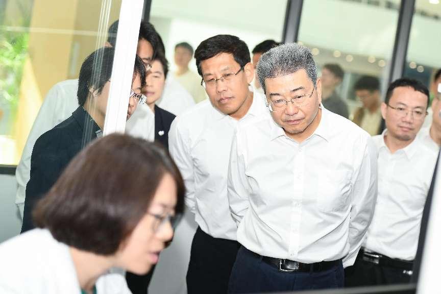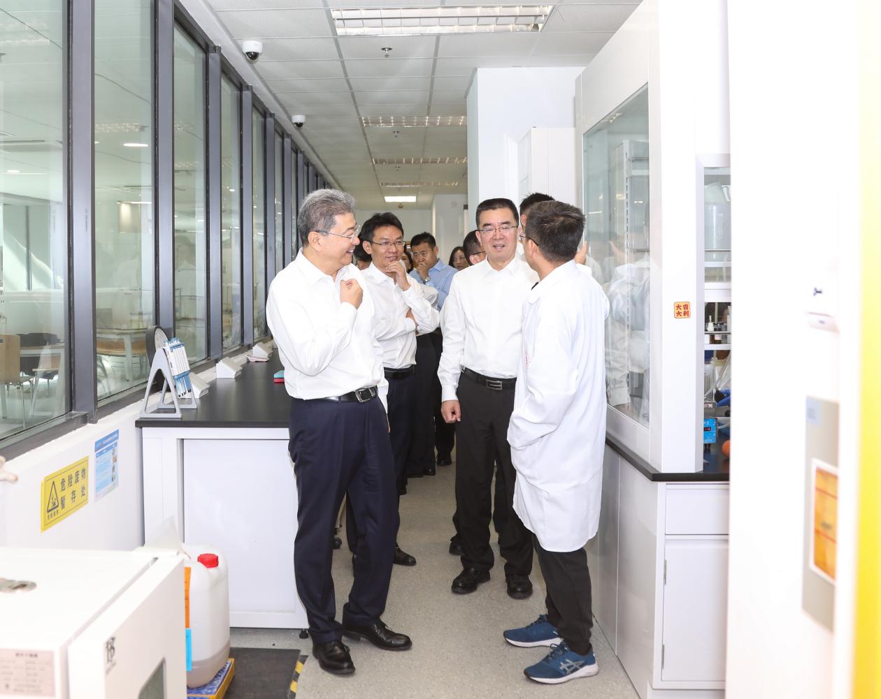 在实验室,孙宏斌教授详细汇报了团队与企业联合开发的已获批三期临床的I类抗血栓新药维卡格雷的研发情况。孙教授介绍,因为基因的差异,传统抗血栓药物氯吡格雷在中国遭遇了“水土不服”,团队通过药物结构的巧妙设计,突破性地避开了氯吡格雷代谢的途径,研发的这款维卡格雷,更适合中国人生命基因传承和身体素质特点。