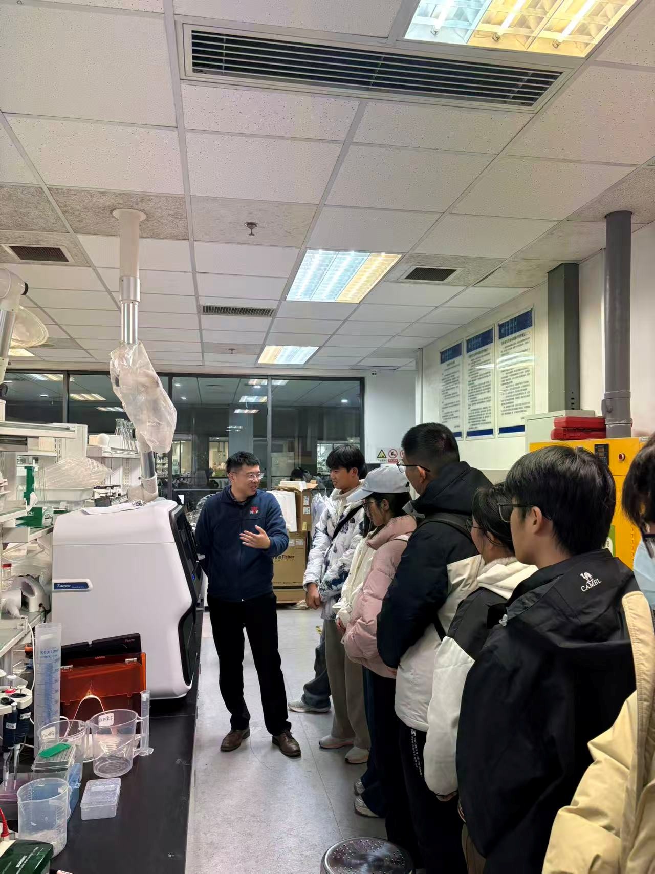 座谈会后,余海翔教授带领同学们参观了实验室。实验室先进的设备、严谨的氛围以及师生专注的研究状态,给同学们留下了深刻印象,使他们对学校的科研实力与创新环境有了更为直观地认识。