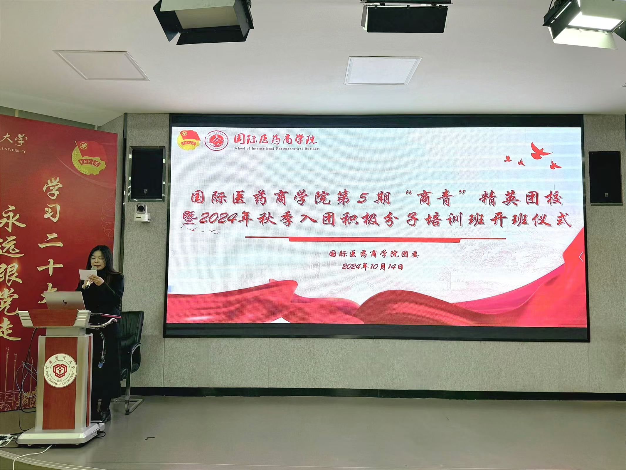 为深入学习贯彻习近平新时代中国特色社会主义思想和党的二十大精神,切实提升团学骨干理论修养和工作能力,增强团组织凝聚力和向心力,10月14日,国际医药商学院在教学楼E105举行第5期“商青”精英团校暨2024年秋季入团积极分子培训班开班仪式。学院党委副书记赵瑾、团委书记周玲、辅导员代表、大一大二全体团支书以及32名入团积极分子参加活动。