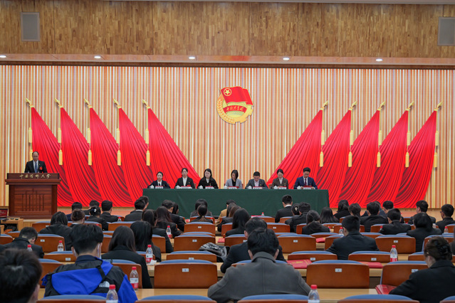 在铿锵有力的国歌声中,大会拉开序幕。药学院团委书记张驰作为兄弟院部代表为本次大会致辞。他坚信,国际医药商学院团委必将以全新的面貌面向新时代,开拓创新,砥砺前行,为共青团建设汇聚强大的青春力量。