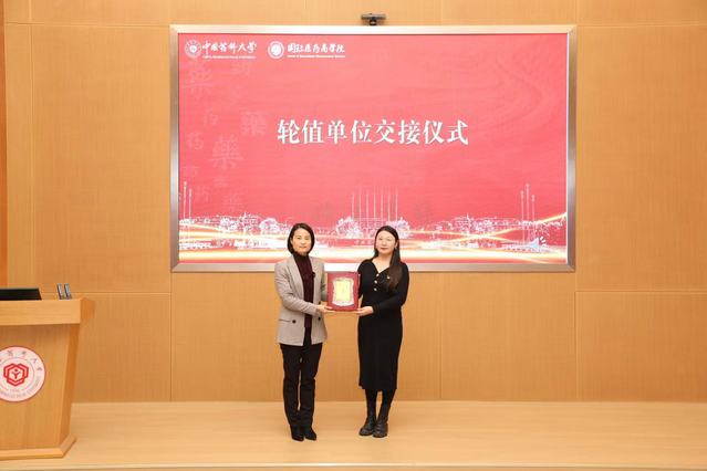 随后,医药健康党建联盟举行了轮值单位交接仪式。由本次轮值单位、国际医药商学院党委交接给下届轮值单位、江苏恒瑞医药股份有限公司党委。江苏恒瑞医药股份有限公司党委党群管理部部长韩卓均介绍了交流轮值期间活动计划。