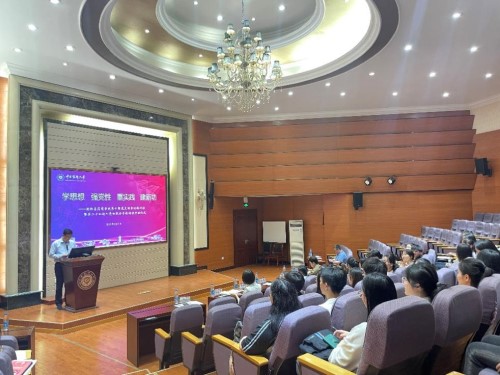 马克思主义学院院长王儒年教授为在场师生讲授《习近平新时代中国特色社会主义思想》专题党课。他沿着习近平总书记的足迹带领大家看变化悟思想,围绕“六个必须坚持”深刻阐述了如何运用习近平新时代中国特色社会主义思想的世界观和方法论来武装头脑、指导实践、推动工作。他结合实际案例,生动诠释了习近平新时代中国特色社会主义思想人民至上的根本立场,鼓励在场师生撸起袖子加油干,向第二个百年奋斗目标大步迈进。
