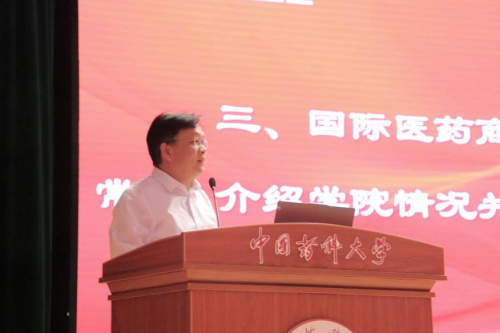 国际医药商学院院长常峰作学院情况介绍并讲授“大思政课”