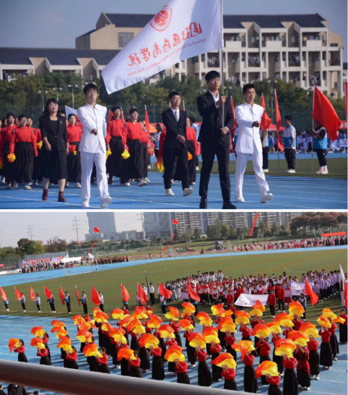 在开幕式上,国际医药商学院方阵由2名老师与57名学子组成。全体师生意气风发,斗志昂扬。伴着振奋人心的乐曲,红色扇面翻飞,轻盈舞姿翩翩,书写青春乐章;出拳、收拳、踢腿,迸发无限热情。整齐的队列,响亮的口号,充分体现了商学院师生良好的精神风貌。