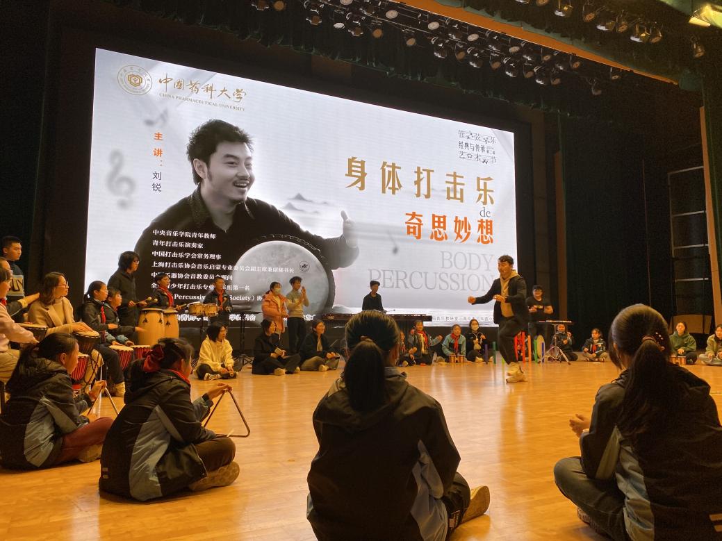 3月13日晚,由校团委主办,文化艺术教育中心、校大学生艺术团承办的墨香药苑人文艺术讲座之《身体打击乐的奇思妙想》美育讲座在江宁校区大礼堂举办。中央音乐学院音乐教育学院教师、青年打击乐演奏家、教育家刘锐老师受邀来校,用精彩的讲授和多样的展示带领同学们感受多样的身体韵律。