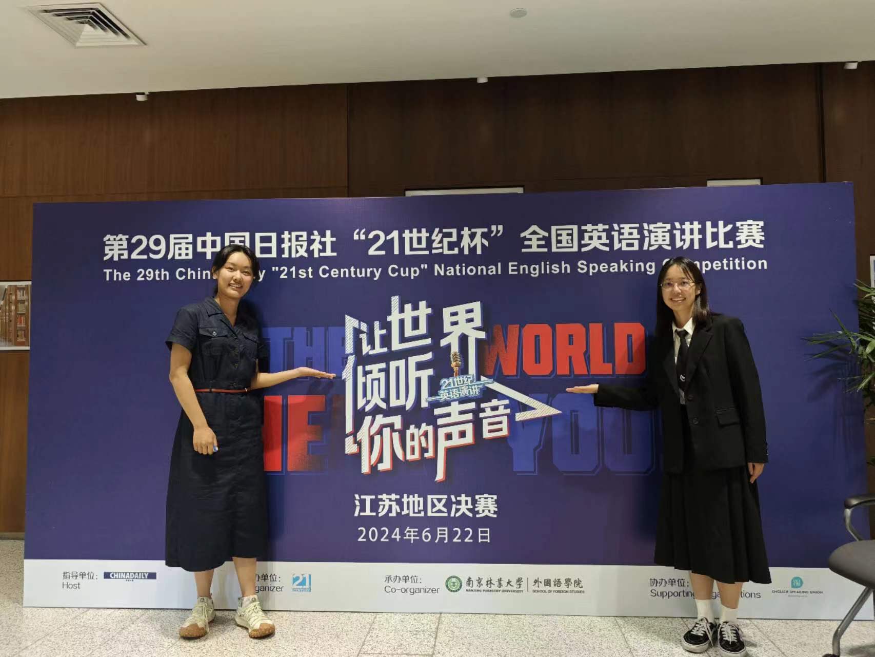 近期,第29届“21世纪杯”全国英语演讲比赛江苏赛区决赛在南京林业大学落下帷幕,我校雷雅茹同学荣获江苏省亚军,为我校历年参加此项赛事所取得的最好成绩,史涵玥同学荣获三等奖。我校参赛团队由外国语学院甘珏和刘毅老师带队,外国语学院赛事中心也为选手们提供了全面的备赛指导。