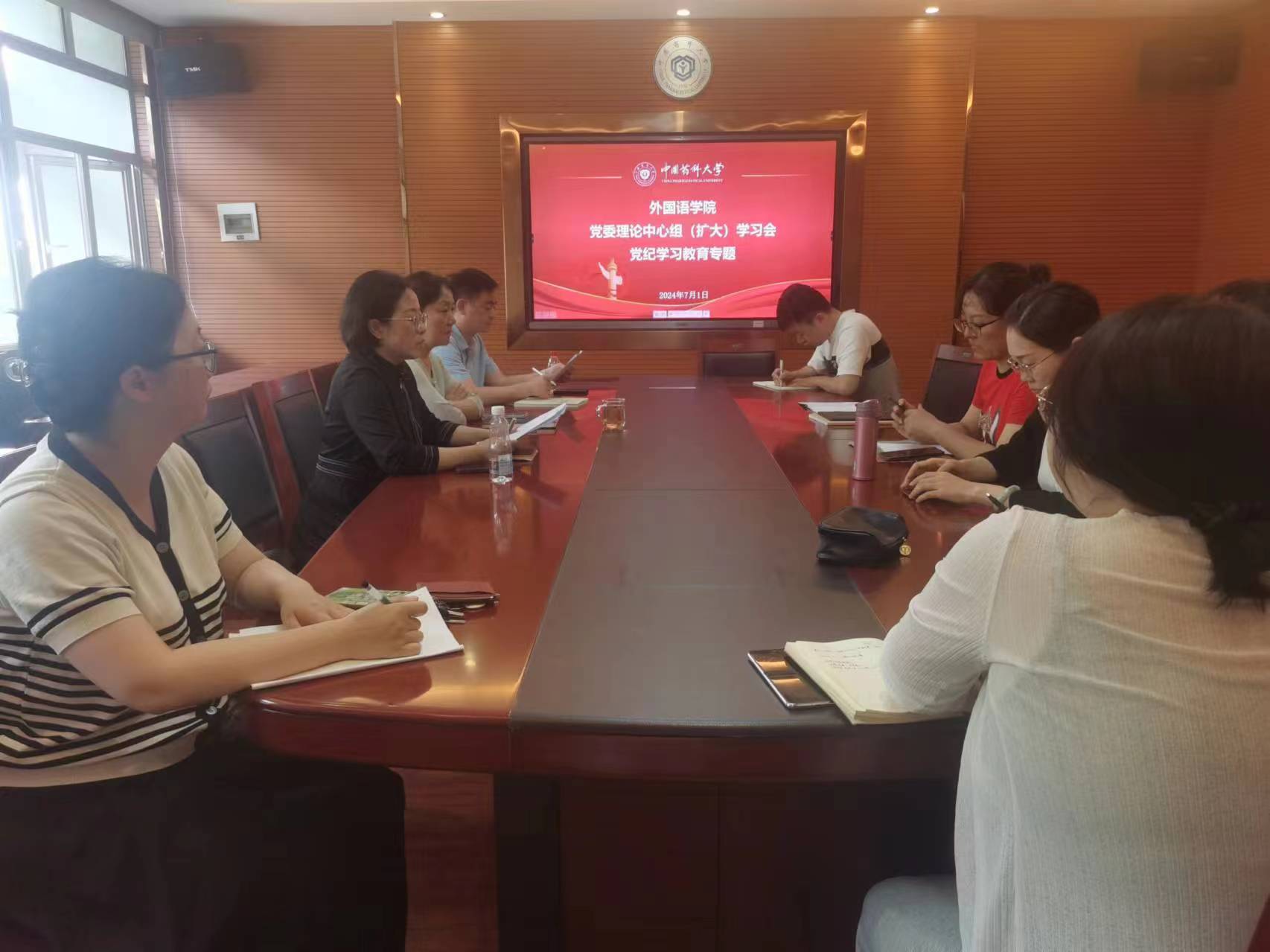 7月1日中午,外国语学院在经管文楼306会议室召开党委理论学习中心组学习(扩大)会,集中学习习近平总书记关于全面加强党的纪律建设的重要论述。院领导班子、党委委员、党支部书记参加了学习。学习会由院党委书记付蕾主持。