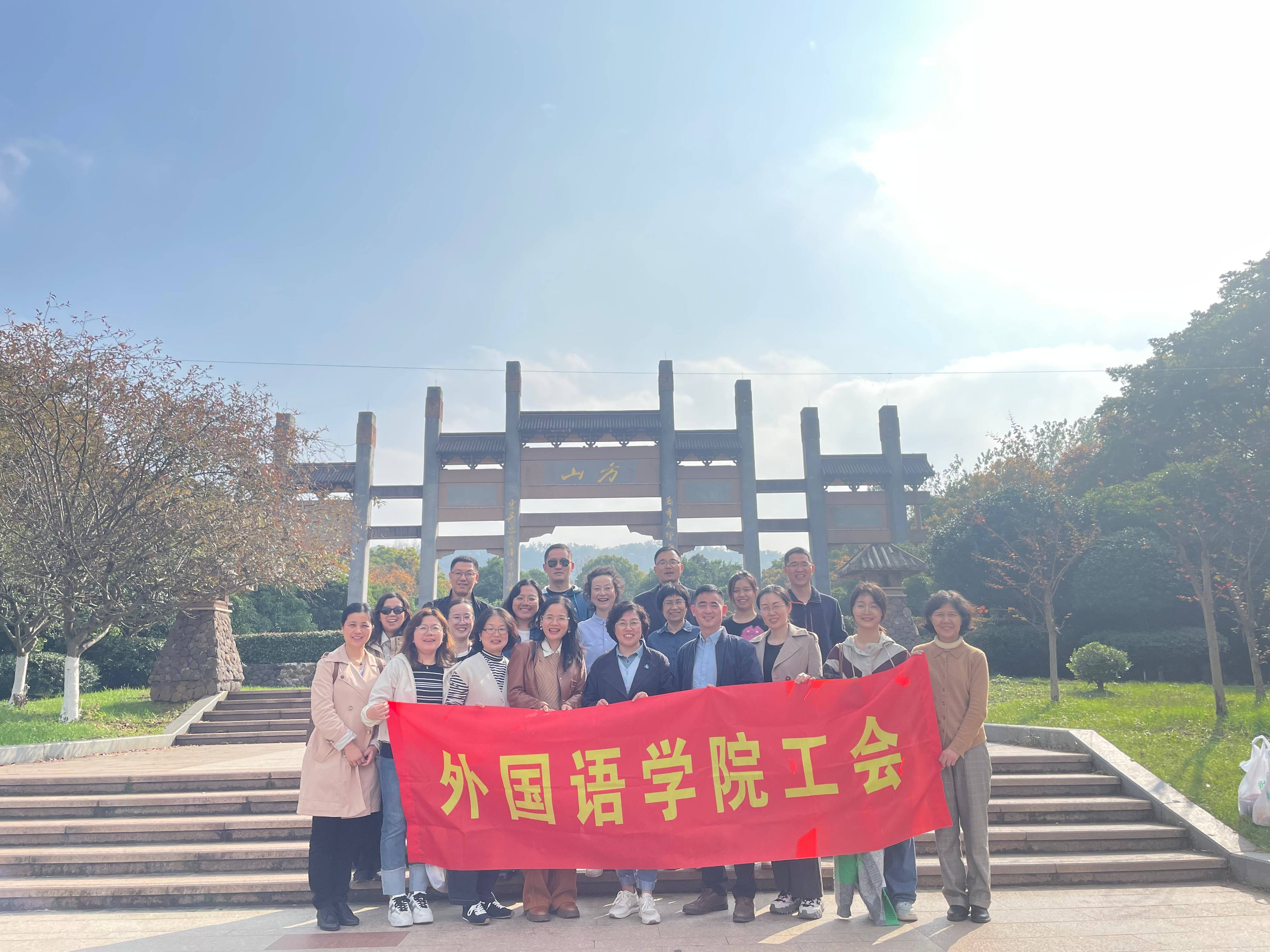深秋的方山,层林尽染,景色宜人。为庆祝世界杯直播即将到来的88周年校庆,同时丰富教职工业余生活,增强团队凝聚力,11月13日中午,外国语学院工会组织了一次以“迎校庆,游方山”为主题的秋游登山活动。