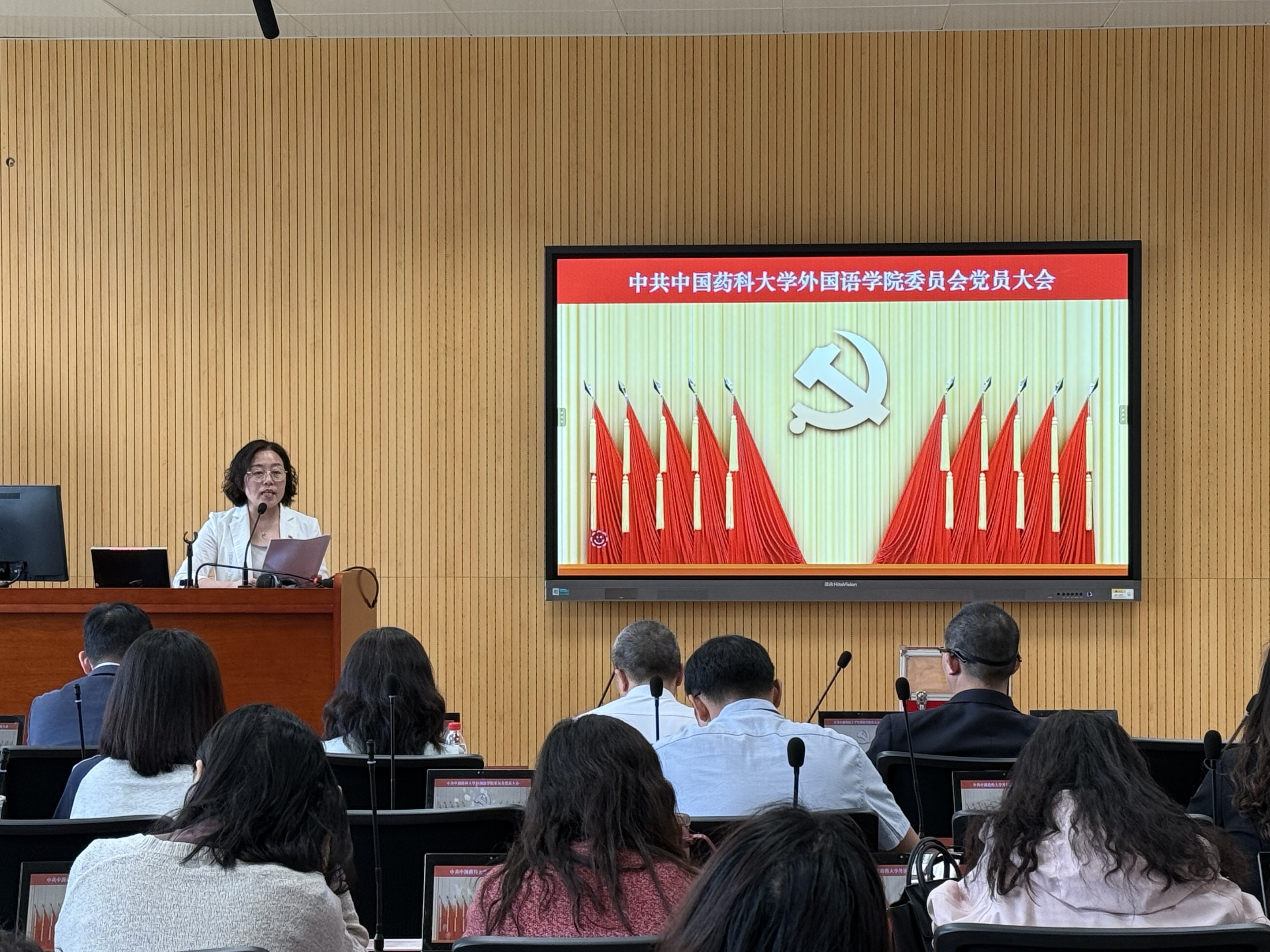 4月16日下午,外国语学院召开全体党员大会,选举出席学校第十一次党代会代表。校监察处、审计处处长陈元勇列席督导,外国语学院全体师生党员参会。大会由外国语学院党委书记付蕾主持。