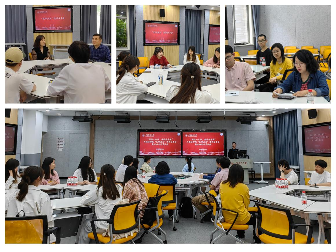 5月4日中午,外国语学院在江宁校区D106-2举办“师生共读,同心筑梦”良师益友读书分享会暨五四青年节活动。外国语学院院长赵光慧、党委副书记杨波、殷丽老师、刘毅老师、团委书记张乔源以及20余名学生代表参加活动。