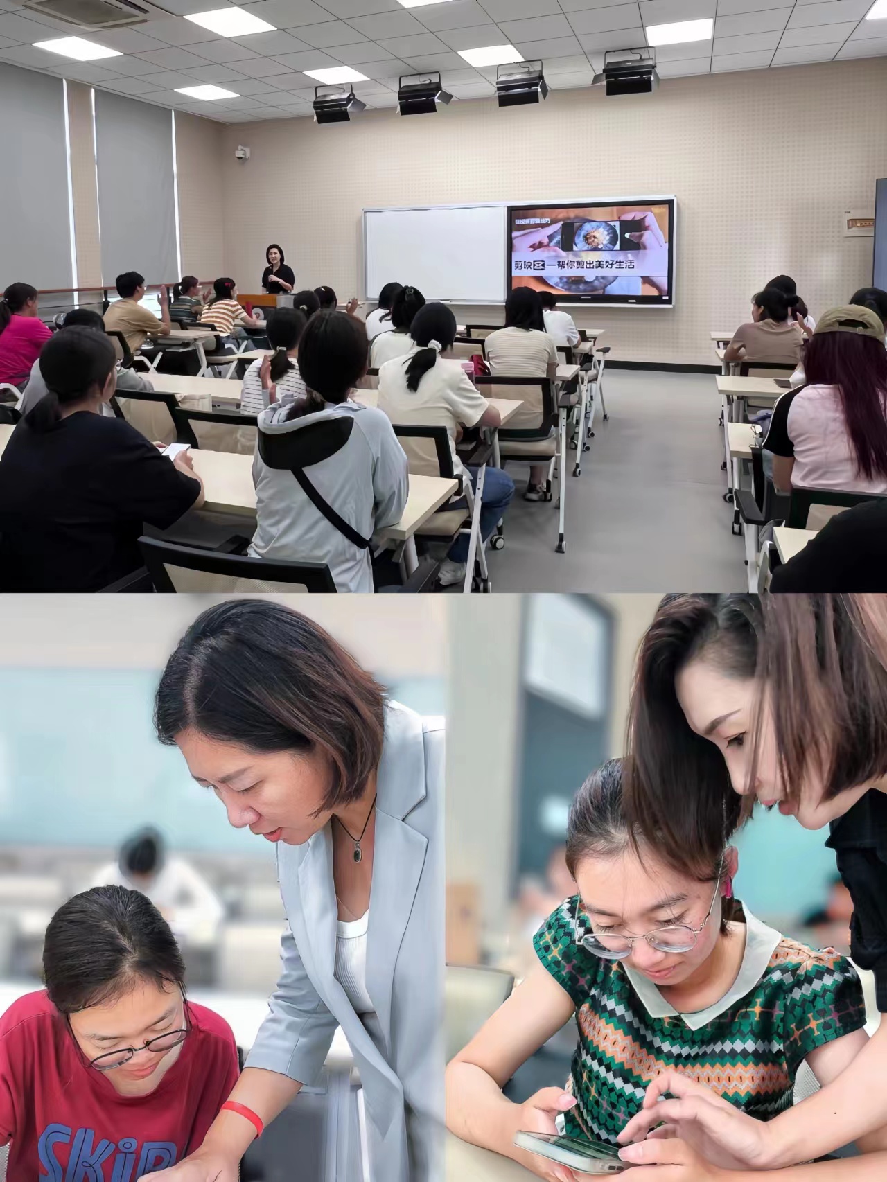 实训营上,特别邀请行知微笑学堂的资深讲师们,围绕电商助农意义成效、视频剪辑核心技巧、全媒体矩阵管理等内容向同学们展开宣讲介绍。同学们在老师的耐心指导下纷纷上手尝试短视频拍摄和剪辑,在实际操作中提升视频剪辑技巧和新媒体运营能力。