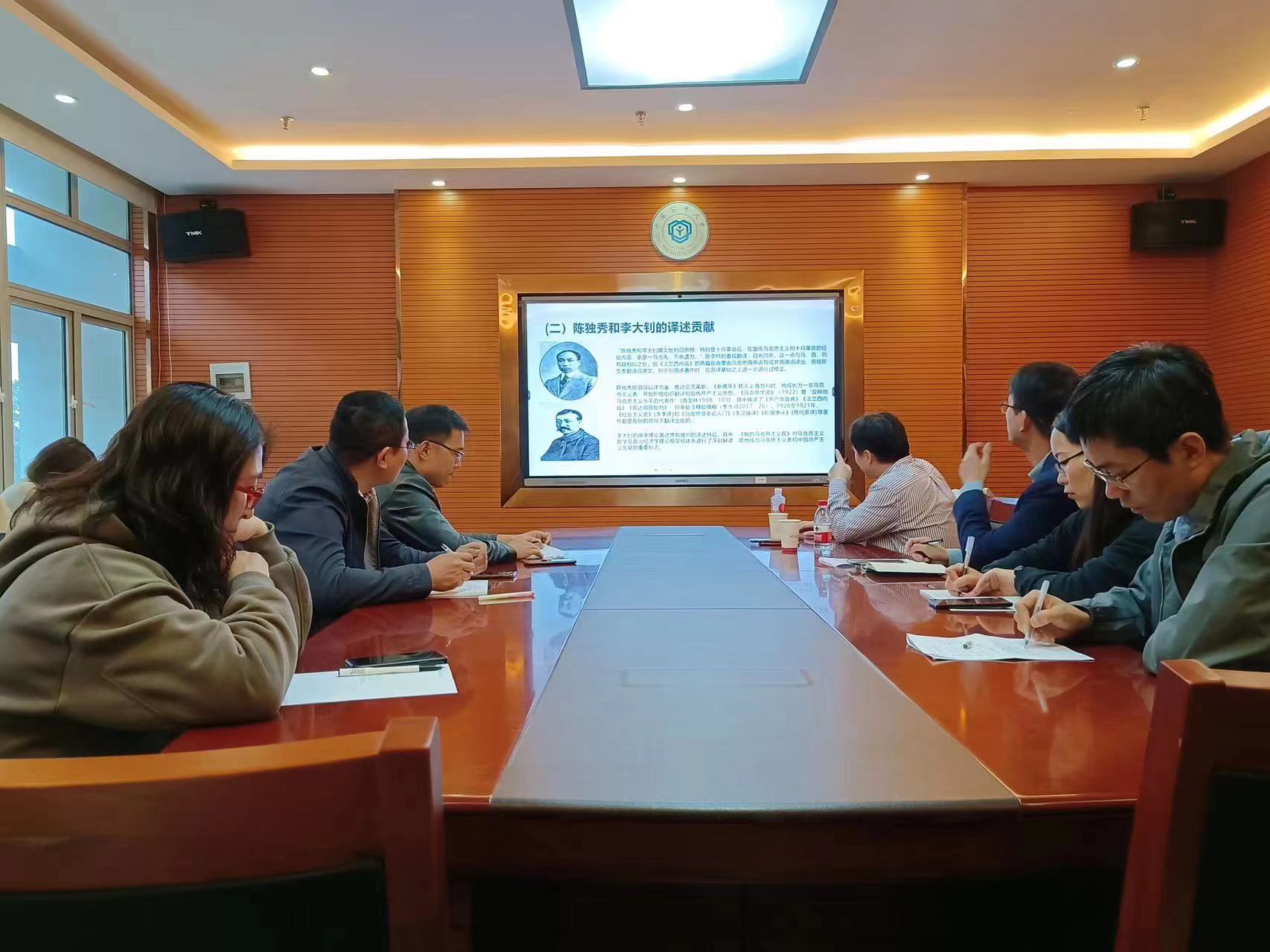 许文胜教授以《初心与使命:建党伟业中的翻译活动研究》为题,从翻译研究的视角,系统梳理了中国共产党百年发展史中翻译活动所发挥的巨大历史作用。讲座详细介绍了建党伟业中《共产党宣言》的翻译传播、中共“一大”召开前后的翻译口译活动,以及翻译活动对中国共产党成立和马克思主义传播的贡献等,着重讲述了早期共产主义者在译介传播马克思主义思想的过程中如何“译行合一”,为中华民族寻获真理和出路。许教授的讲座不仅为中国翻译史研究、中国翻译理论发展史研究提供了新的思路,更对中国共产党党史研究具有重要意义。