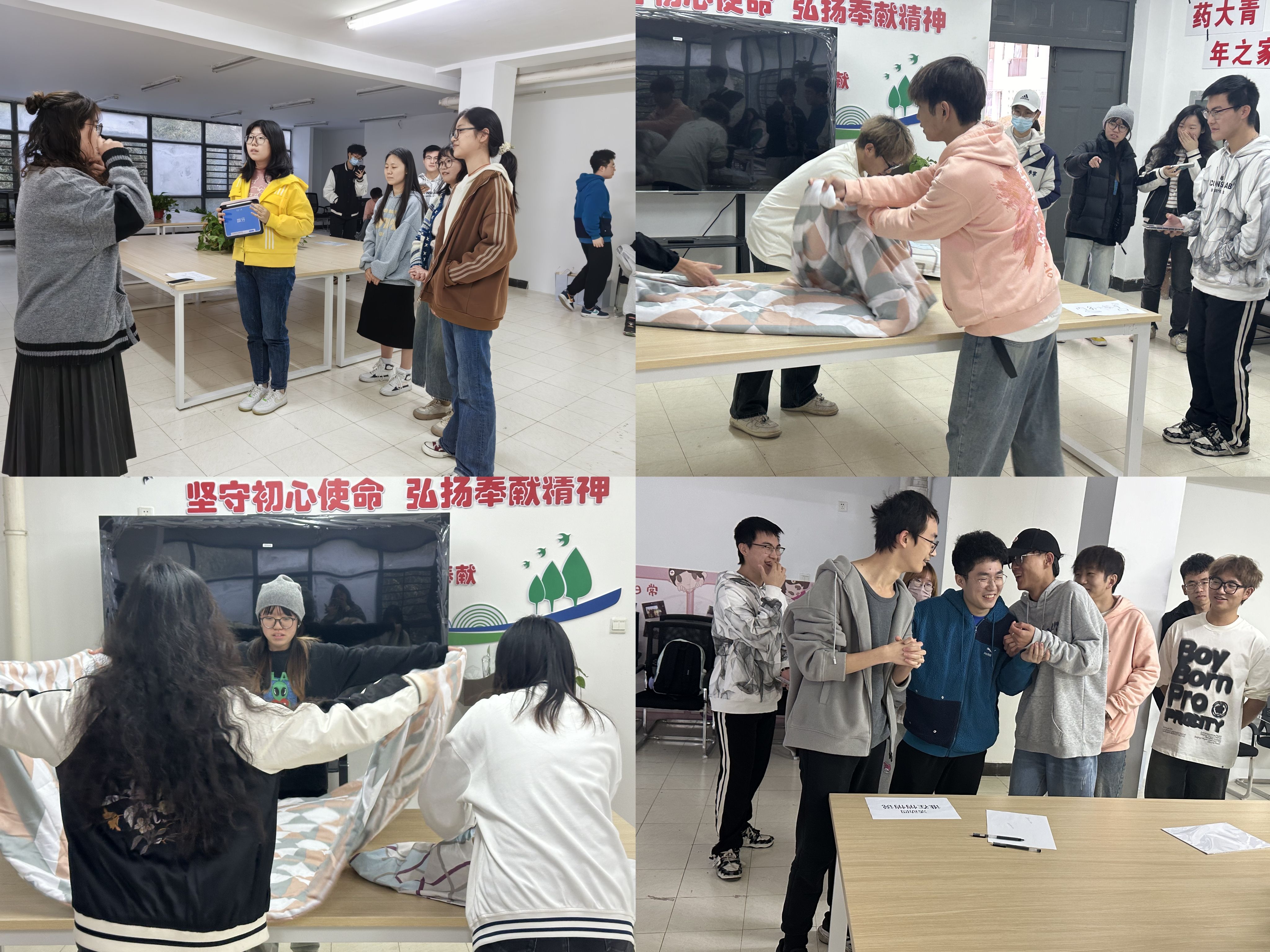 惟馨惟德,存斯雅室。宿舍不仅是住宿的场所,更是精神文明的缩影。干净整洁、学风浓厚、团结温馨的宿舍文化氛围,有利于学子的生活及学习。活动当天,辅导员老师及学生代表深入宿舍,对宿舍的安全隐患、卫生状况等方面进行了细致的评比督查。在走访过程中,辅导员与同学们进行亲切交谈,了解他们的学习和生活情况,强化宿舍用电安全意识以及卫生意识。最后,综合各宿舍的卫生、安全、文化氛围等方面的情况,15个宿舍脱颖而出,荣获“文明宿舍”称号。同时,为增进室友感情,考验室友默契,学院还开展了精彩纷呈的趣味游戏环节,如你画我猜、整理床铺等等,活动现场气氛活跃而热烈,室友们生动诠释何为“心有灵犀一点通”。