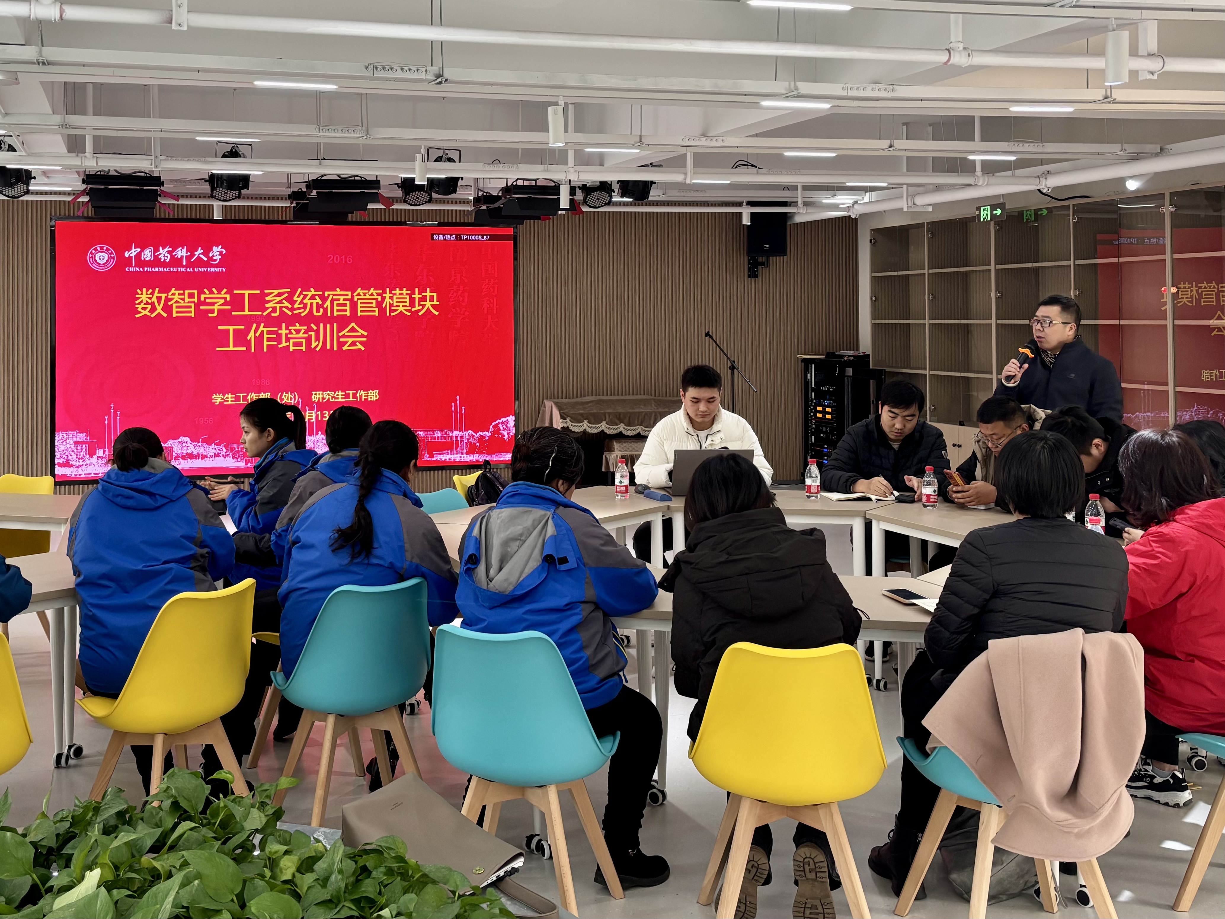 我校数智学工宿管模块上线在即,为加强业务指导,12月13日上午,学工处社区管理中心在江宁校区B组团孟目的书院多功能厅召开数智学工系统宿管模块工作培训会。各学院宿舍管理员、学生社区物管站站长参加培训。