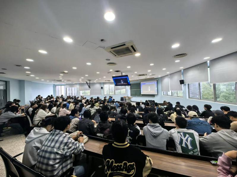 在互动环节,新生围绕学业发展、科研实践、创新创业、职业规划等主题踊跃提问,郝海平结合学科发展趋势和个人体会,分别进行了深入的解答,现场气氛热烈。