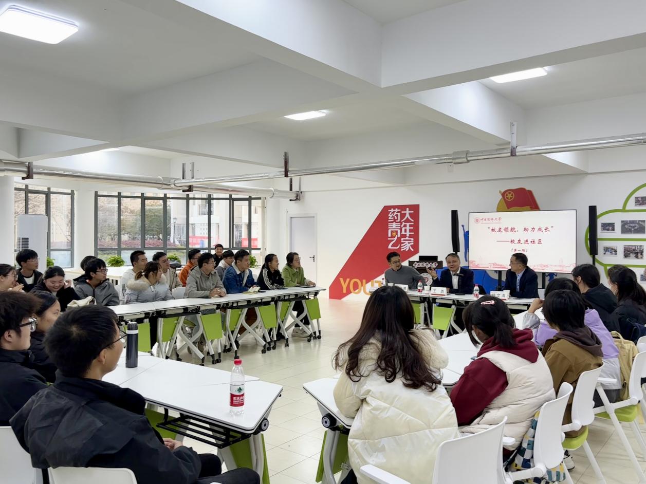 为充分发挥杰出校友协同育人作用,营造学生社区良好育人氛围,11月17日下午,由学工处主办的“校友领航·助力成长”——校友进社区交流分享会在江宁校区文轩苑“药大青年之家”举行。我校87级校友、南京圣和药业股份有限公司董事长王勇应邀走进学生社区,与同学们互动交流。学工处处长杜文清及来自各社区的60余名学生代表共同参加了活动,活动由学工处副处长杨安博主持。