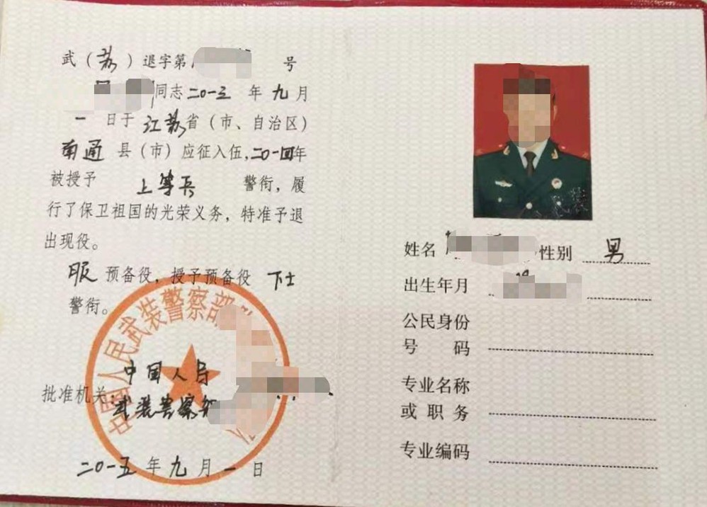 退出现役证照片示例(报考退役大学生士兵专项计划的考生提供)
